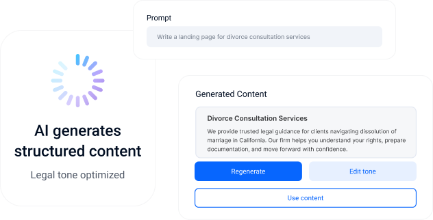 Generate high-quality marketing content tailored to your legal practice in seconds. From website pages to client emails, create clear, structured, and professional content designed to attract and convert potential clients.